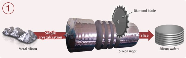 At the center of the module are the solar cells, and this is where the actual energy conversion happens. These cells are cut from monocrystalline silicon ingots into thin wafers. The silicon is refined and then doped with elements like boron and phosphorus to create a p-n junction, which allows the cell to generate electricity when exposed to sunlight. Each individual cell produces a relatively small voltage, so they’re connected together in series using thin copper ribbons that are soldered onto busbars. This creates strings of cells that bring the voltage up to usable levels.
